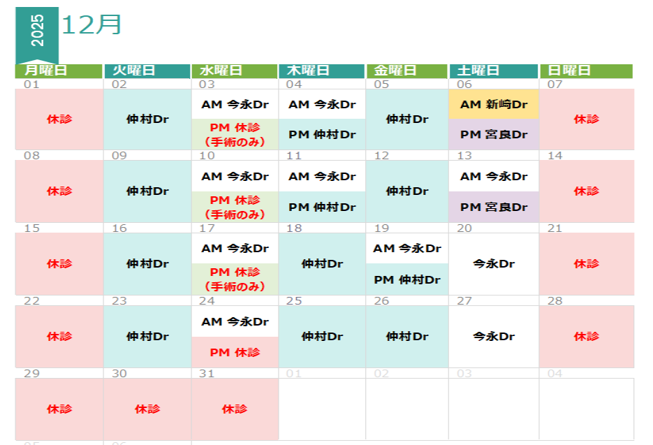 2025年12月28日(日)~2026年1月5日(月)は休診となります。